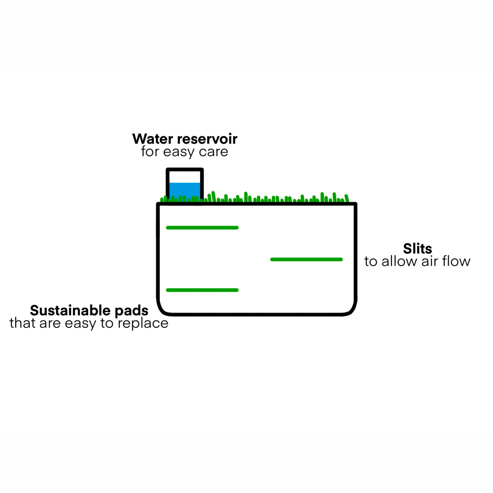 MossPot is a decoration piece with moss integrated into it. The moss will be able to clean a great amount of particles out of the air, increasing the air quality. It will be affordable, silent, all-natural and it will fit in any room.